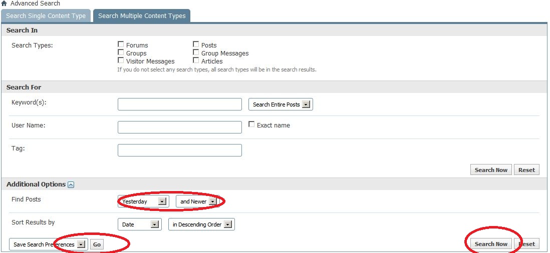 The first way is to set up the "Advanced Search" feature found in the upper right hand portion of the page.