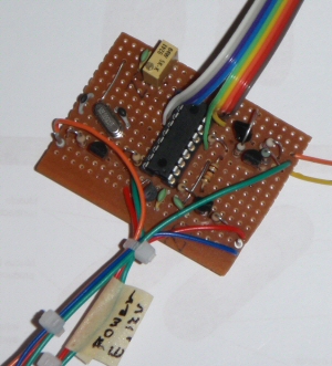 Although not shown, the PIC is a 16F628A. The transistors can be any general purpose NPN type. The crystal is an 8MHz type, although any frequency would work providing you match the crystal definition in the basic program.