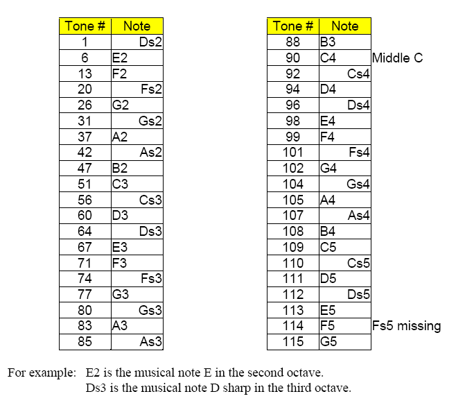 So from the chart, we know we want the note 'E' and the chart gives us: E4 which is E in the fourth octave (the octave above middle 'C') as = 98. So three E's would be 98_98_98 which is what we have (we're not quite finished yet though).