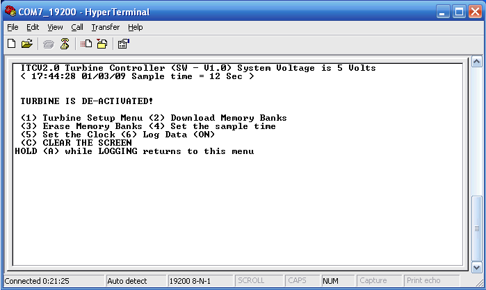 if I try adding more menu items hyperterminal simply wont display them. The text only fills the first 1/4 of hyperterminals windows so lots of room for more.
