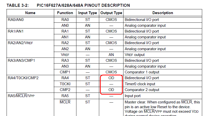 Does it have something to do with me using the comparator on ra.1,ra.2? I have been reading the datasheet and it mentions ra.3,ra.4 in section5.1 PORTA and TRISA Registers, I am already using ra.3 with no problems as an output.