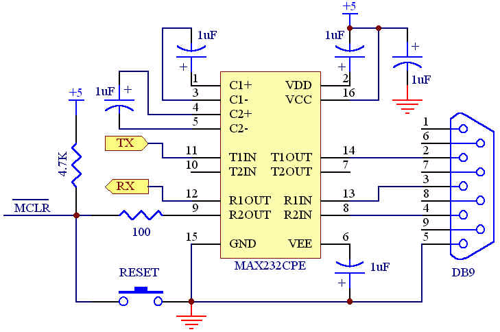 I have a serial cable going to a MAX 232 chip, following the schematic in the documentation.
