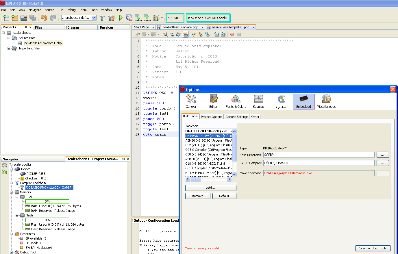 Also, to use the PICBASIC PRO, you might need to add mpasmx to your path: add $InstallationDir\mpasmx. For example, if you installed to the default MPLAB X installation directory in a 32 bit Windows system, you'd need this in your path: