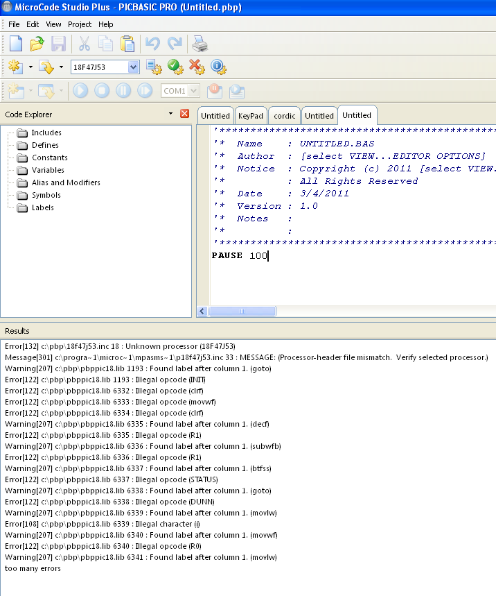 Ok, I have not tried at home yet, just from work. But I get errors trying to compile for the new chips. I tried three of the new J's, and pretty much get the same errors. I have checked to make sure that MPLAB had the chips and their P18F47J53.INC files as well.