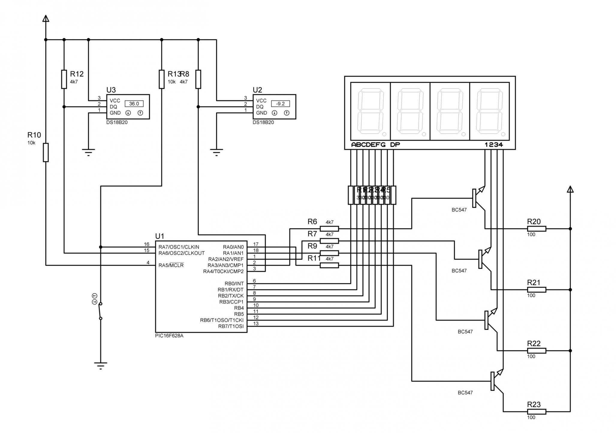 I made one thermometer with LED display for my car. I intend to use two DS18B20 sensors. Which method it's better : 1.using a switch for sensor-and a single pin of 16F628A (picture 1); 2.switching between sensor from one port of PIC (figure 2).