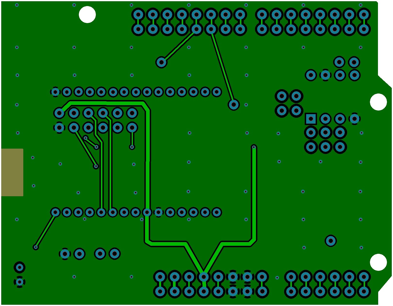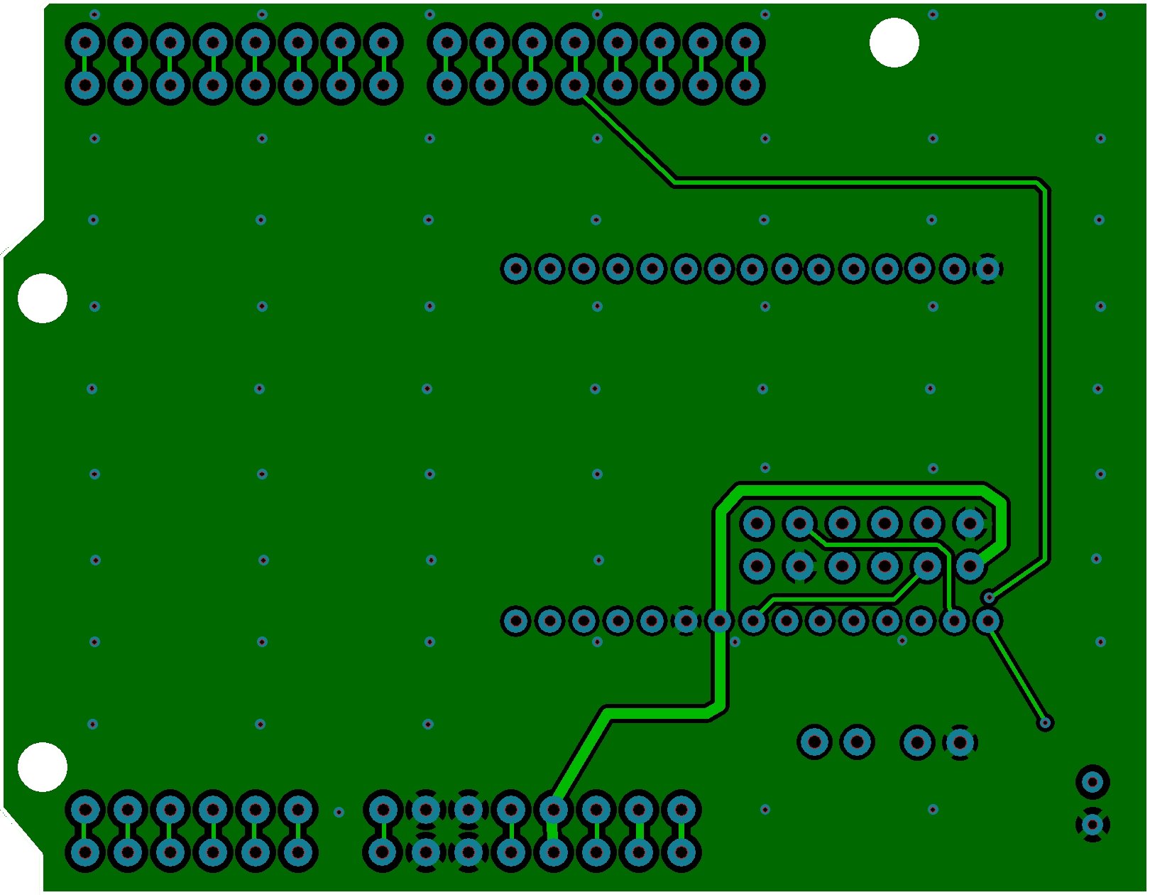 And, I still have to study the pinouts to see where the I2C connections need to be made. I2C presents one problem in that there's no way to easily deal with address conflicts should another shield also use I2C. I'll probably just tie all the address pins high with the leads exposed in such a way that the user can cut PCB traces to change the address. Also, multiple pull-ups could be problematic
