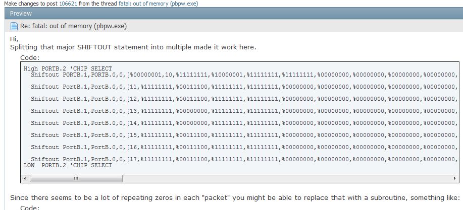 Nice and tidy with a horisontal scrollbar for the code window. Now for the way it shows up in the thread: