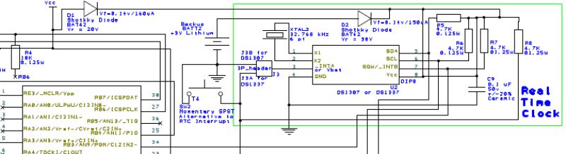 I see what you are implying about a leakage path from the backup power source to the DS1337 through the 4.7K pullup resistors to the PIC. However, if the PIC is powered off that would mean the PIC pins that are connected to the bottom of the pullup resistors would have to be at ground level or at some voltage below the backup voltage. I don't have enough knowledge of the PICs to know whether that is the case or not. Do you or anyone on this forum know about this or where I could find out?