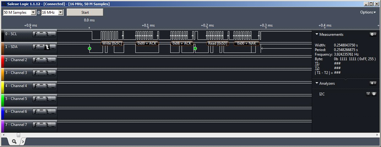 banging. Fortunately, I'm hooked up to the real SDA and SCL on the chips.