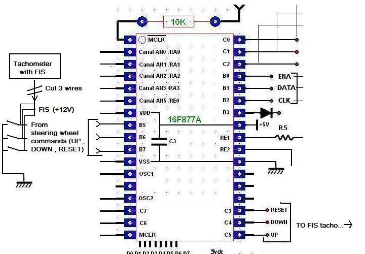 i have a system with a PIC16F877A that is in serial with steering wheel command (RESET / UP / DOWN on B5,B6 et B7)