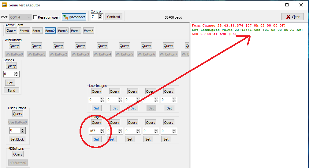 Visie-Genie writes to pre-defined objects so in this case it is a pre-defined string object so all we have to do is convert what we need to send to a string, calculate a checksum and send. This is where Genie differs from Serial as in the Serial mode you are sending a serial command to the display which is translated to a command to do a supported function on the display.
