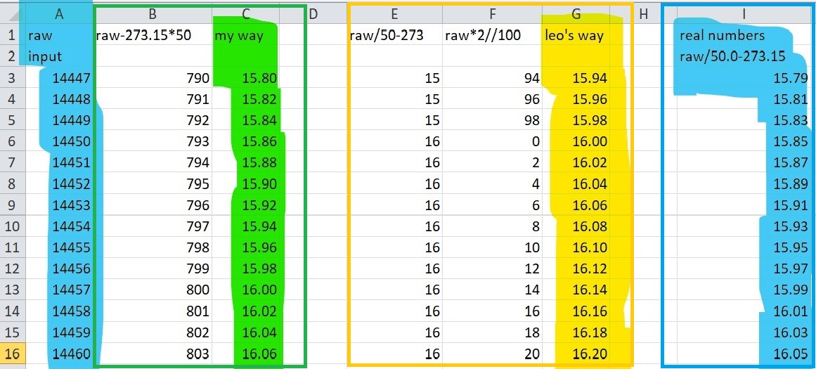 temperature = tempir/50 ' based on the manual we need to divide by 50 or 0.02