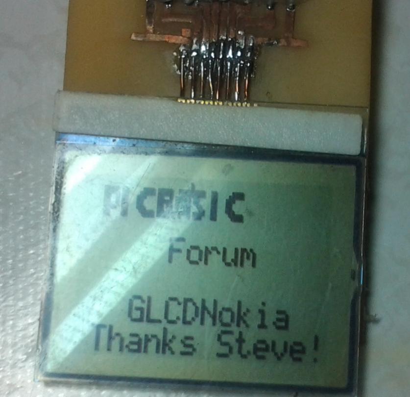I managed to run a demo application by Steve using the NokiaGLCD wrapper(http://www.picbasic.co.uk/forum/show...ght=3310+Nokia).
