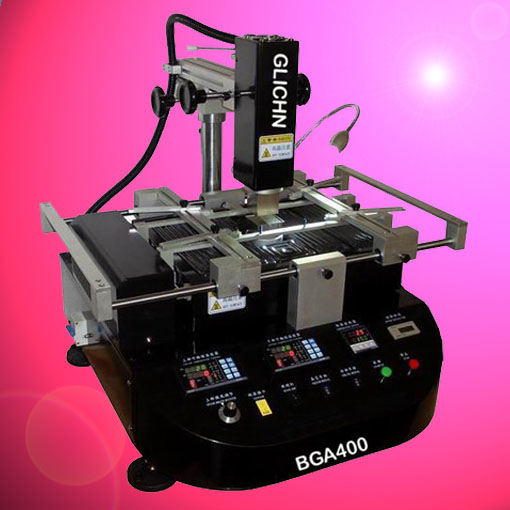 Rework stationBGA500 of GLICHN, 3 temperature zones with chinese and english touching screen,3 groups of temperature profiles can be show at the same time, 30 groups oftemperature data can be stored. BGA,CSP, LGA( Land Grid Array), Micro SMD, MLF(Micro-Lead Frame ),BCC ( Bumped Chip Component ) and other chips can be deal.it is best equipment for PCB especially large PCB. More models like BGA510Cwhich is with CCD camera and computer, BGA400, BGA310, BGA180D which is IRsolder station; XBOX, motherboard and mobiles can be repaired using them, theyare repair station and rework system; solder and desolder can be finished. On www.smtchn.com, more specification can beseen.