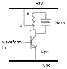 I also checked the peak voltage when this components operates and it gives around 25v amplitude to the piezo which is very close what the max limit of this piezo is (30vpk), so everything said above makes perfect sense.