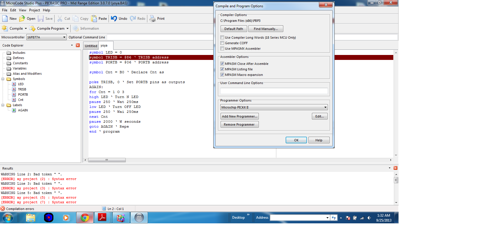 Under Compiler Options I have none of the options selected, although on initial start up the use MPASMX Assembler was checked but I unchecked it because it said it could not find it. (is it this?)