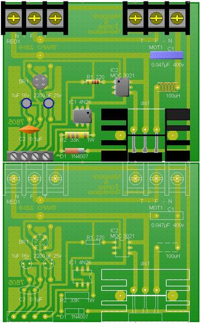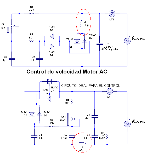Notes on the triac, there is a legend that says: "100uH", there, the auto-inductance is housed with their respective toroid
