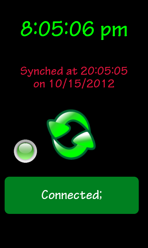 The app simply puts out the current time and date on BT, and your project reads it for further processing. Thats it. And yes, it also speaks out the time it synchs at.