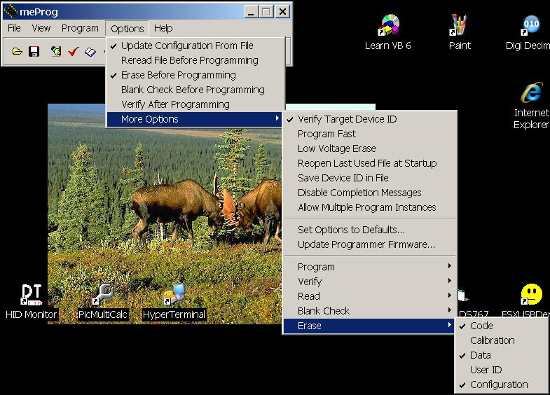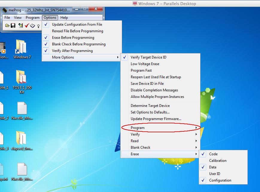 I think you are interested in 3 things in particular: erasing before programming, programming and erase options.