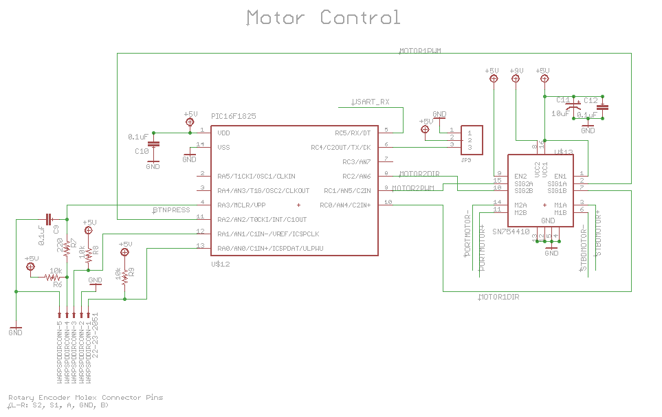 I found examples of determining the direction of turn of a mechanical quadrature encoder. Darrel helped way back with some of it and all was well until late last night when I thought I'd better retest this after working on other parts of the project. Lo and behold, the MotorRPM variable isn't going up or down steadily but rather goes up by one or two but could just as easily go down (when turning the knob in the same direction). I did spend the first part of the year converting from using PBP's HPWM on CCP1/2 (which are ECCP modules on the 16F1825) to CCP3/4 (regular CCP modules) but at the time I'm fairly certain I tested the quadrature part and it worked OK.