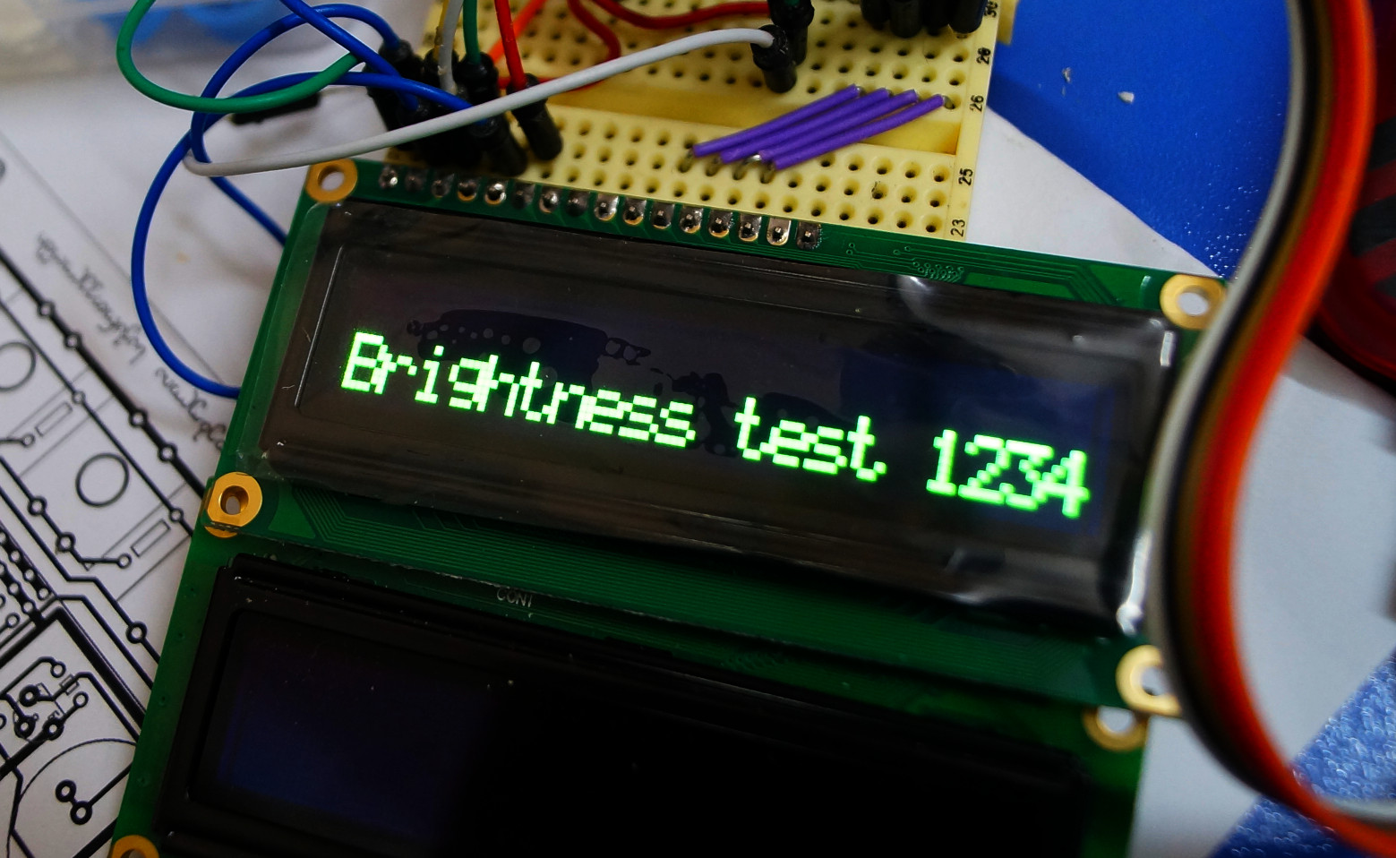 There are 3 brightness settings as I've figured out. minimal (really bad, brightness difference of individual pixels becomes very noticeable), normal (difference between pixels is still noticeable, but you have to check it very carefully) and max brightness, which is really neat - it is almost as bright as fresh Futaba 1602 VFD....