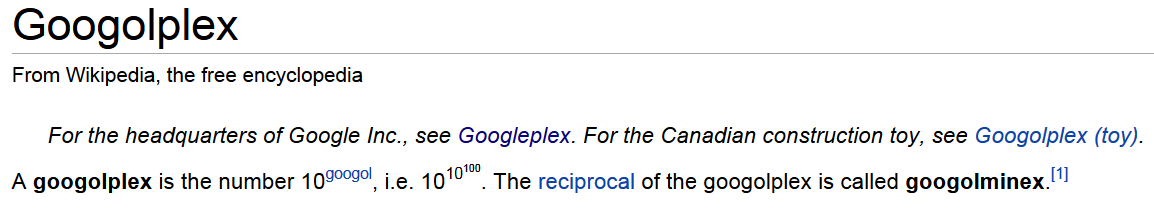 I remember when I was a kid (my wife says I still am) about 40 years ago and my cousin told me the biggest number in the world was googleplex (or something like that), I thought he was full of crap.
