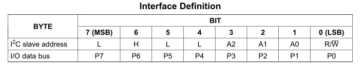 Haha! A question I can answer for you! The part number is PCF8574A - the "A" differing only by its upper address nibble, 0111xxx. If I include the write bit (I do because no read is ever done from the completed modules), the address range is $70 - $7F. With both the '74 and '74A, I can put 16 modules on a bus and make my own "Wheel of Fortune"! Did I not say I bought quite a number of these? :)