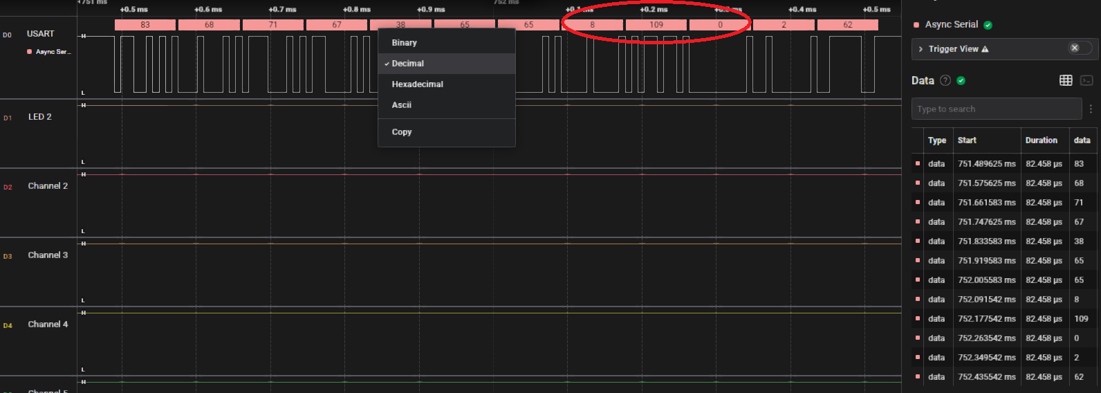 It seems the USART analyser (Async Serial) has been updated since I last used it - the formatting has changed a bit.