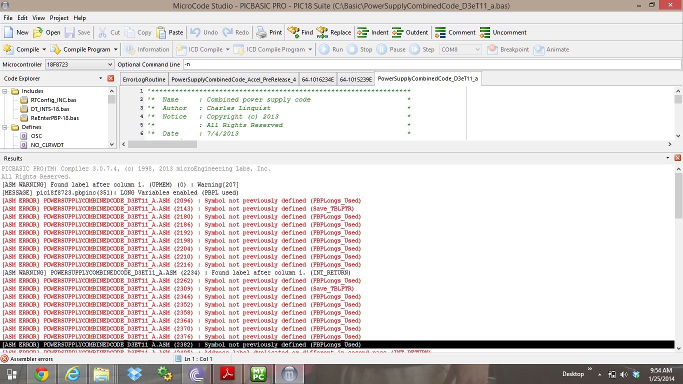 When I try to use the -n option for PBPL, the compile goes OK, but when it gets to the assembler I get the following: