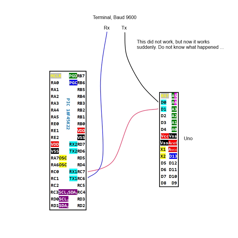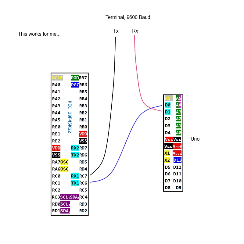 Re: Serial: PIC18F45K22 -> (Arduino) Uno = works | Uno -> PIC18F45K22 = fails Why