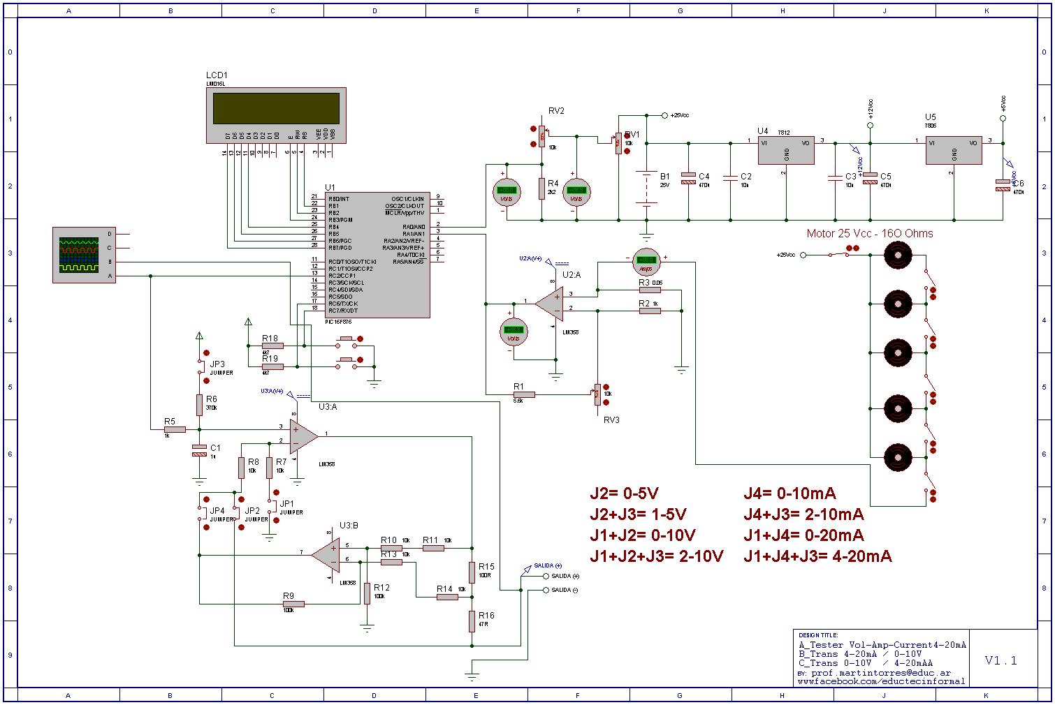 Basically, what I do is with the first Ampop (12v source) is to convert the 4-20mA 0-5V input voltage ... that, I do mirror the output of a PWM pic and put it in a second Ampop (24v source) which transforms 0-5 in 4-20mA.