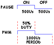 Then there's something about PWM that I didn't understand. HIGH/LOW using PAUSE for 500uS is not the same as a 1000uS period with 50% duty cycle?