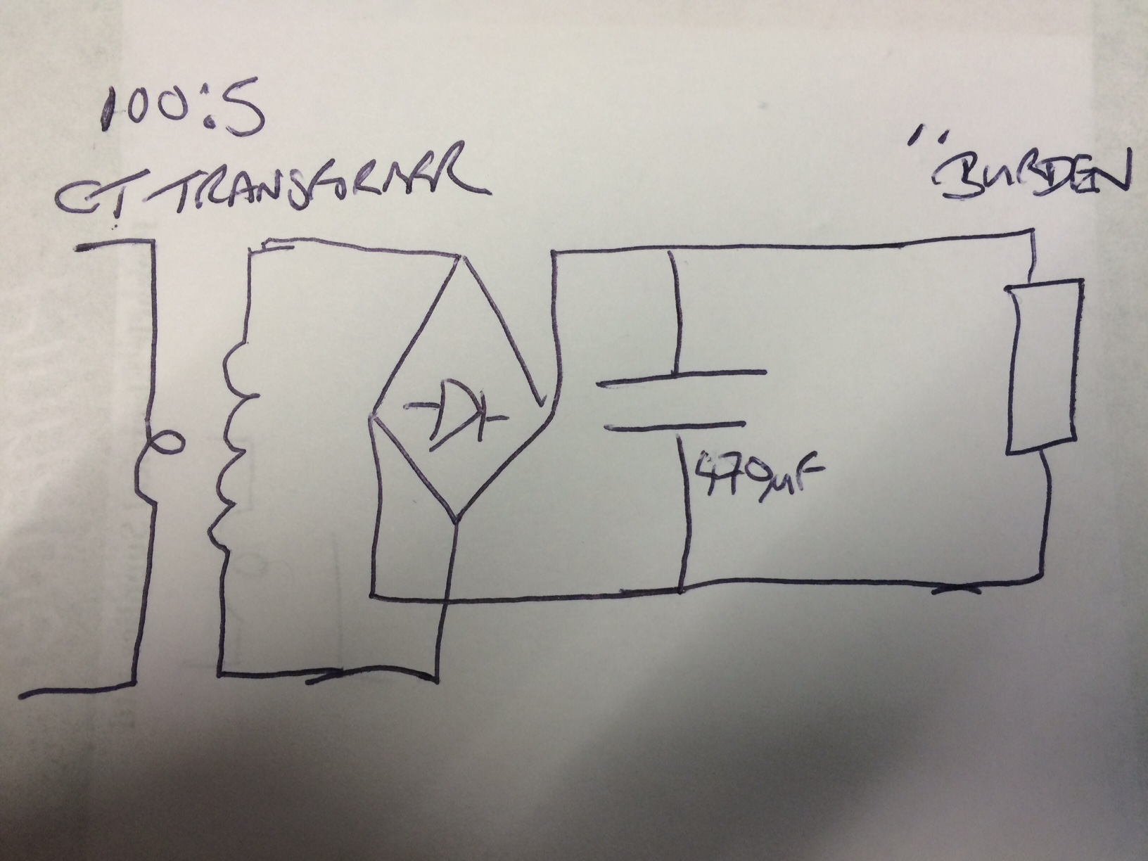 I have the enclosed circuit using a 100Amp / 5Amp CT ... Bridge Rectified and smoothed.