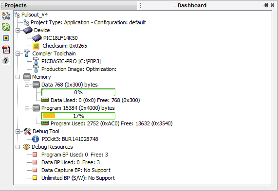 The following devices are not currently compatible with PBP: 10F200, 10F204, 10(L)F320, 10(L)F322, 12F520, 16F527, 16F570, 16(L)F18855, 16(L)F18875
