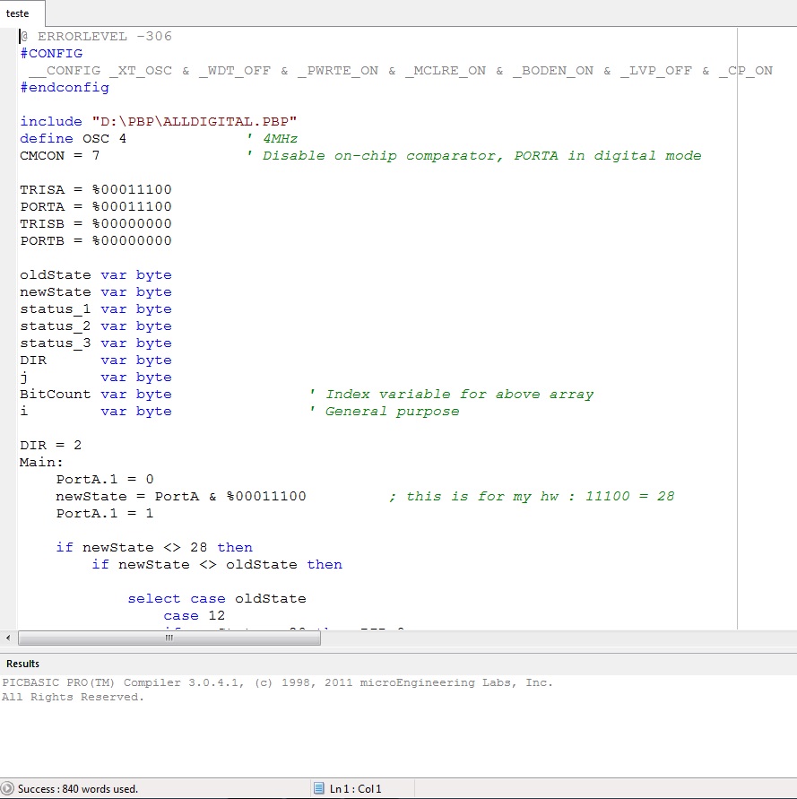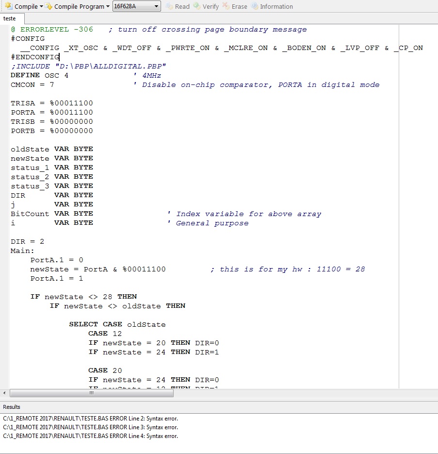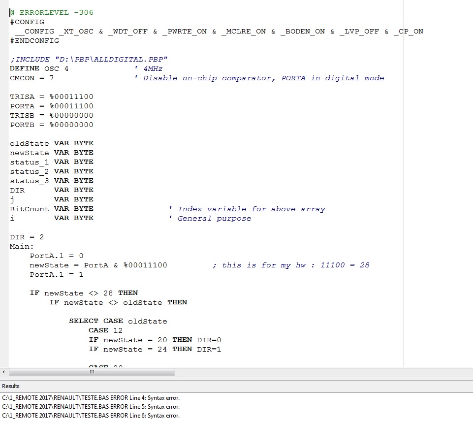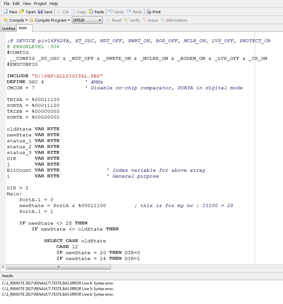 Now, I´m trying to compile the same source code on my PbP 3 and MPASMX.