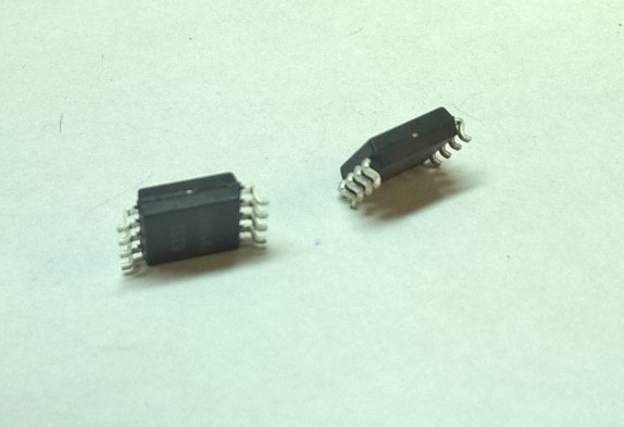 Next you need a new flash memory. Go to your favourite onlined store and search for W25Q80BV. I bought this one. You want the narrow one (150-mil). Chances are you'll find only the wide one (208-mil): don't worry we'll make it fit!