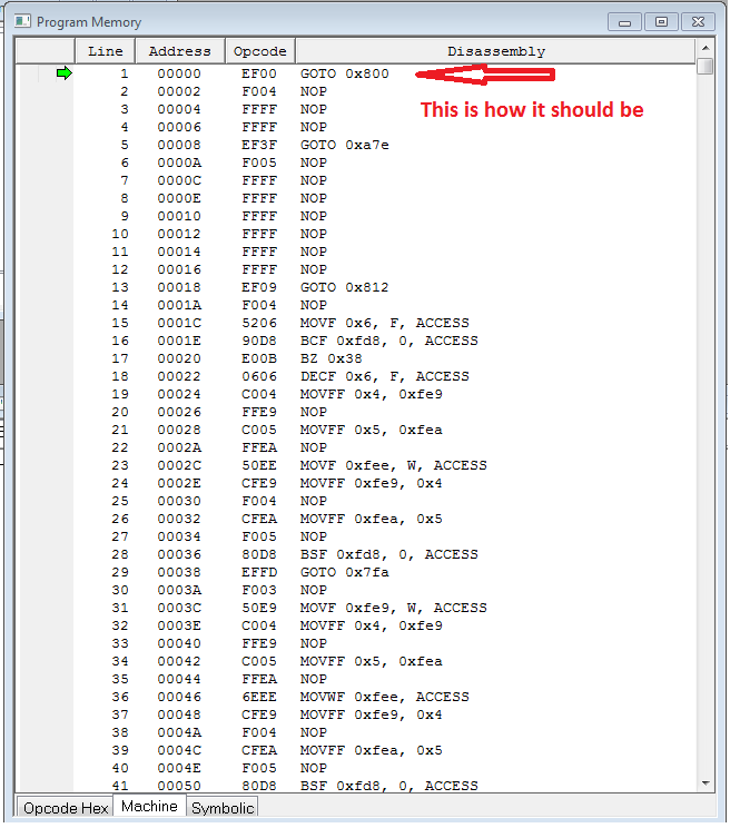 I've found that for some reasons, the device showing-up that behaviour (the one I've under test), had the configuration bits named BBSIZ - set to 4K words of the Boot record AND the config bit WRTB (boot block write protection set too!!!)