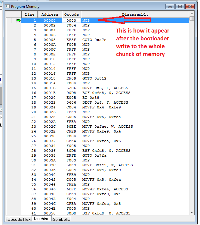 Also, from the microprocessor datasheet, while writing to the program area, the PC (program counter) is stopped.