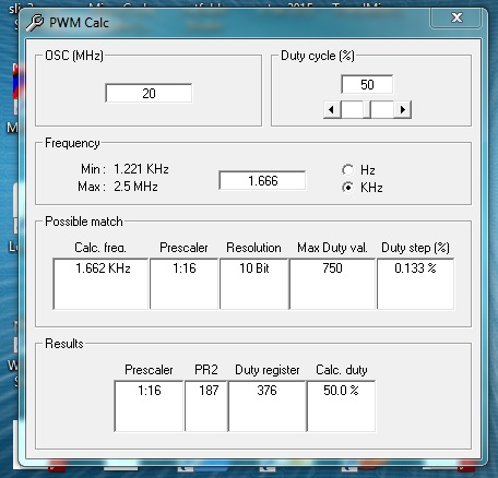 the lowest possible hpwm frequency is 245 hz (for a 4mhz quartz) and 1221hz for a 20mhz quartz, now i have to calculate the frequency of 400 pulses.....