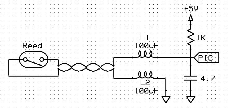 Wow, Twisted/shielded cable, Inductors, 47 Ohm resistors, and capacitors.... Why not just use some opto isolators at the PIC side and run some current, say 10 mills or so thru the reed switches with 20 gage unshielded wire and call it a day. I can't beleive this topic is still doing.
