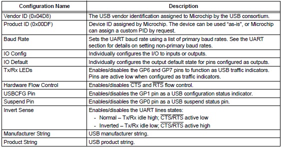 The configuration utility provided by Microchip allows the user to configure the MCP2200 to custom defaults. The configuration utility (shown in Figure 2-1) connects