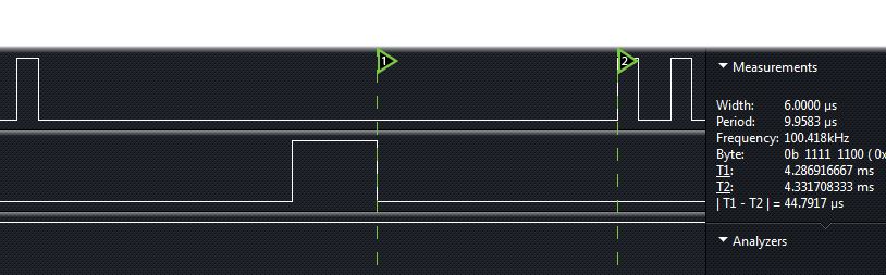With this post I'd like to visually demonstrate what kind of latency and overhead to expect when using DT-Ints. I'd like to point out that I am i no way criticising DT-ints, they are wonderful to work with and I could not imagine PBP without them but when you need to interrupt at high speed they are not that great and I wanted to put some numbers on it.