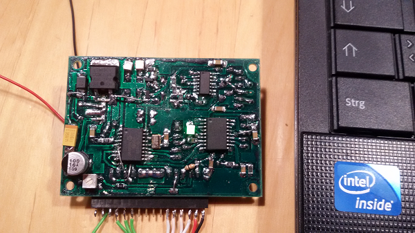 Made several mistakes, killed one 18F1320 donīt know how , destroyed my PICKIT operating system, had to desolder and solder one 18F1320, BIG Mistake in the schematic: I had to use the lower 4 bits of PORTA and these begin at PORTA0 not PORTA1 . Put a resistor between 74HC14 and RB1 otherwise the PIC may be grilled.