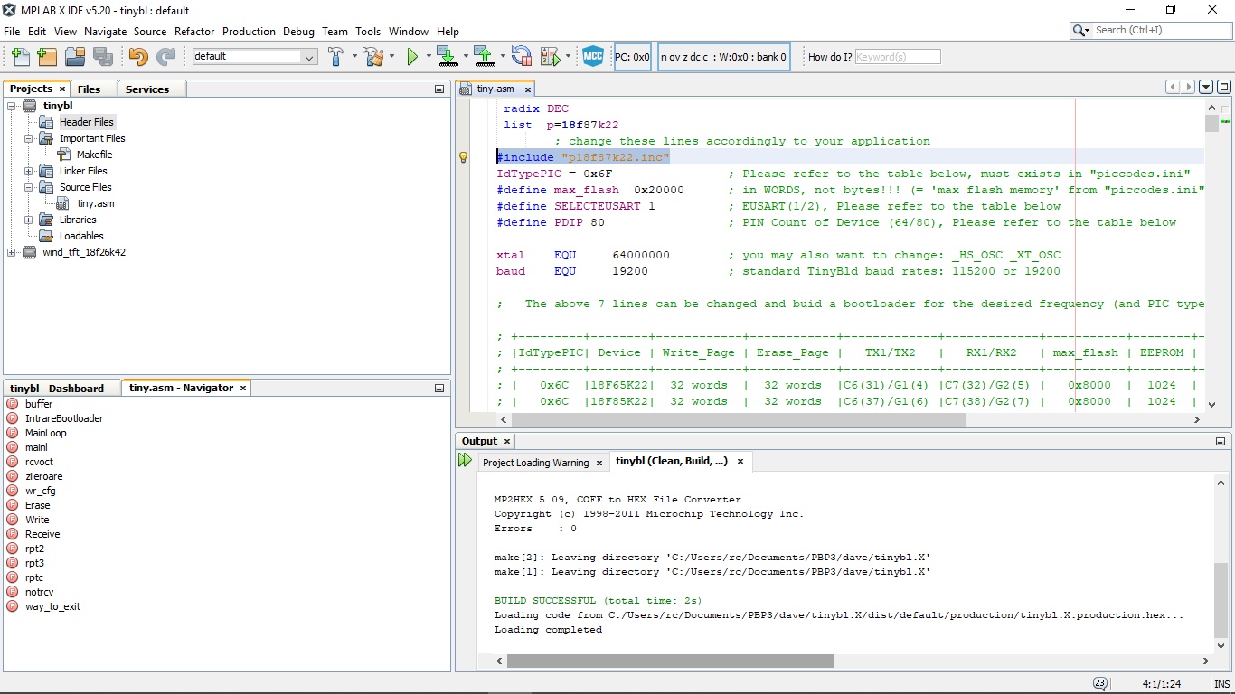 dave have you the asm code for MPLABX for the 18f27k40 used for the tiny bootloader