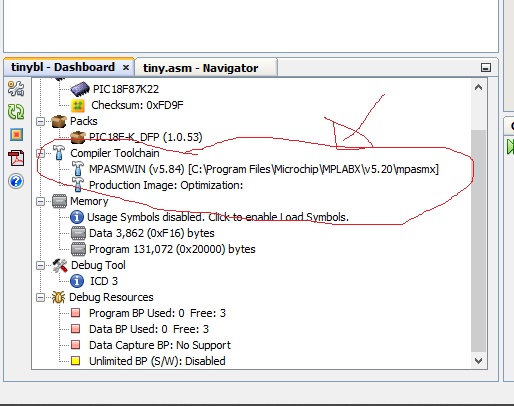 after adding it to the tool chain , mplab complains that the mpasm is not supported in 64 bit systems and to migrate the project or use earlier ide