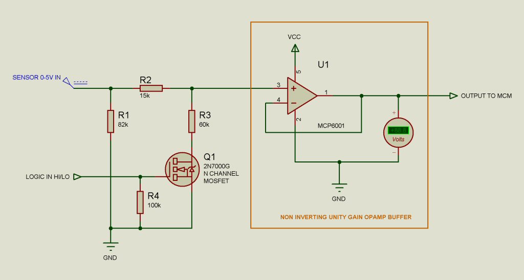 A potential divider activated by the MOSFET turning on and an non inverting unity gain opamp buffer.