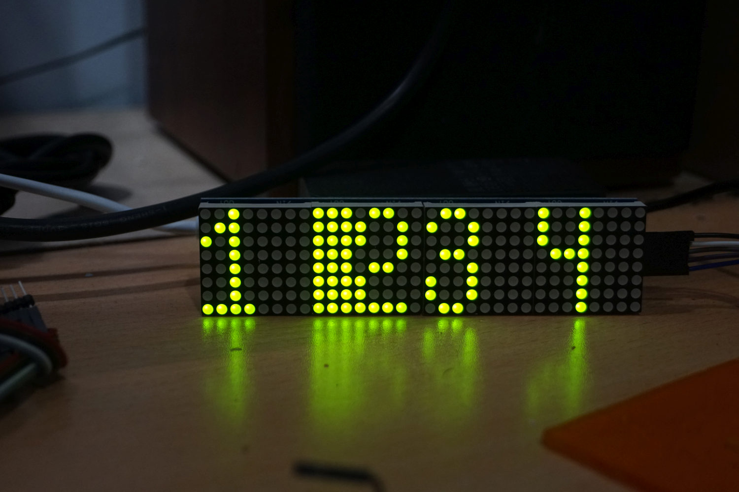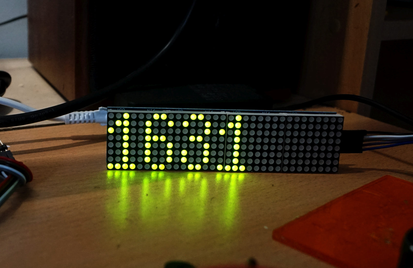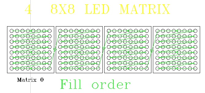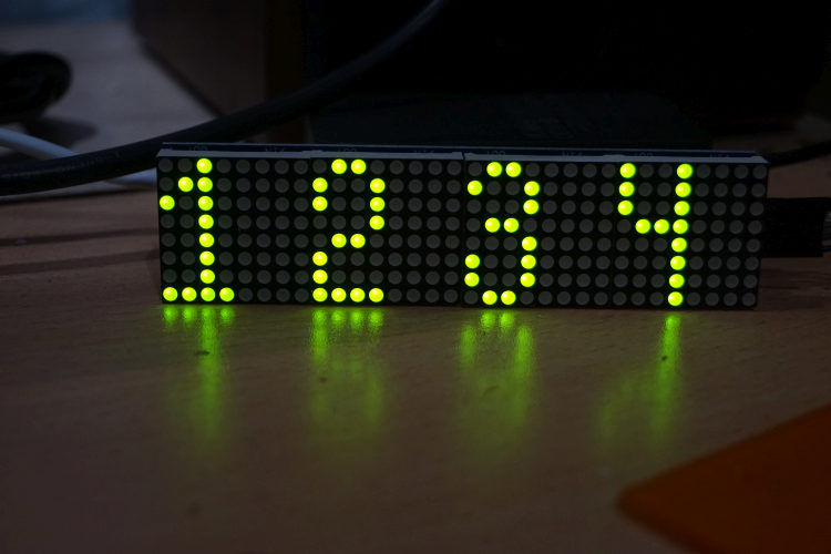 I'm using a MAX7219 dot matrix display, 8x8 pixels, 4 daisy chained.