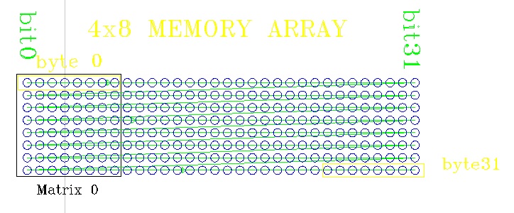LINE VAR BIT[32] 'line of MAX7219 buffer