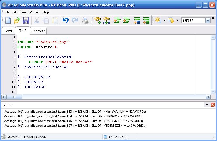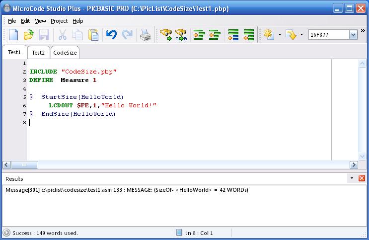 To measure the size of any block of code, simply place an @ StartSize statement just before the code you want to measure. Then place a @ EndSize Name after the block of code and replace Name with something that you can easily remember.