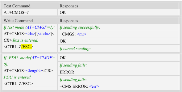 There is no mention of this ESCape command in the datasheet, just here in this table. But, unlike it is appearing, even if I cancel the CMGS command, I will get an OK.